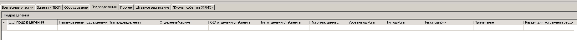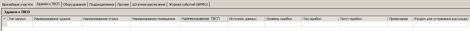 Б) Во второй секции находятся таблицы с данными о расхождениях («Врачебные участки», «Здания и ТВСП», «Оборудование», «Подразделения», «Прочее», «Штатное расписание») и системная таблица («Журнал событий»). Остановимся по подробнее на каждой из них.