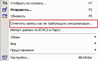 Поскольку подавляющая часть пользователей в первую очередь поддерживает в актуальном состоянии учетные разделы системы Парус-8, большинство расхождений при синхронизации связано с отсутствием данных в ЕГИСЗ. Мы добавили возможность пользователям отмечать такие записи как не требующие синхронизации. Это обусловлено тем, что все недостающие или дублирующиеся записи в ЕГИСЗ будут там скорректированы после начала выгрузки.